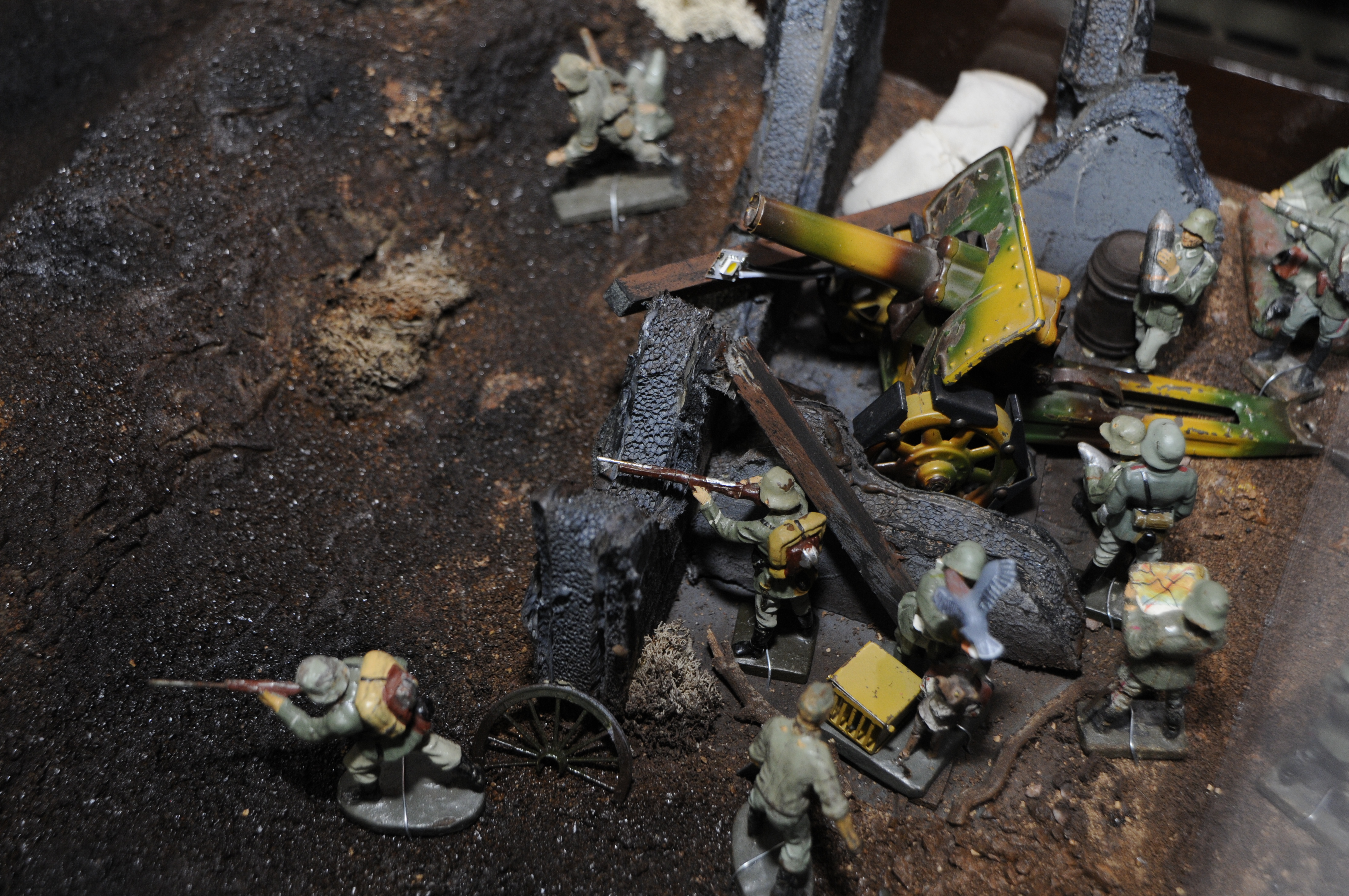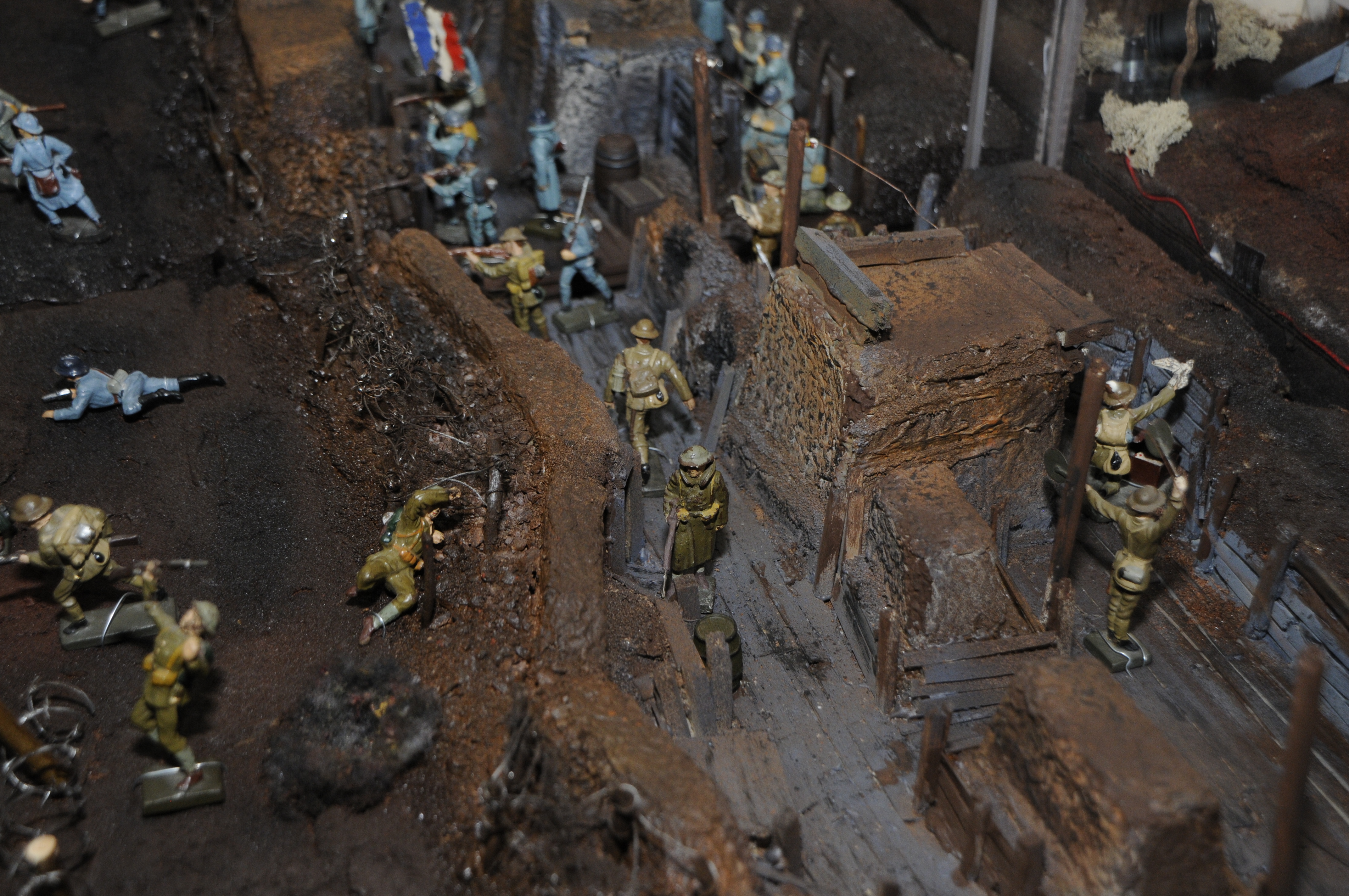 Cette maquette représente un épisode de la bataille de La Somme en 1916. Le projet, très complexe à concevoir, démarra à la fin janvier 2014. La maquette fut construite en modules séparés. Tout ce qu’il y a sur le terrain a été entièrement fait à la main : ruines, tranchées, barbelés, tente médicale, puits, voie ferrée et wagons. Une partie du matériel utilisé le fut avec des matériaux recyclés. La construction de la maquette a nécessité 300 heures de travail et plus de 50 tubes de colle.
